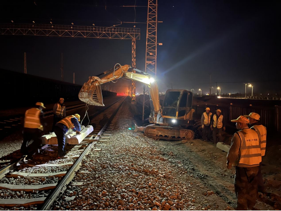 自项目复工复产以来,面临现场施事情业面多、施工使命沉重等难题,铁投公司团结施工单位明确责任区、使命区,严酷实验网格化全方位治理,将剩余工程量凭证月、周、日层层剖析细化,制订科学合理、可操作性强的施工生产妄想,现场路基天天禀区段24小时流水作业,多种机械有序交织运行,近200余名工人紧锣密鼓地举行道床整理、电容枕替换、电缆敷设、锚点倒设、填补道砟等施事情业,为中川北站多式联运项目全线通车运营全力冲刺 。