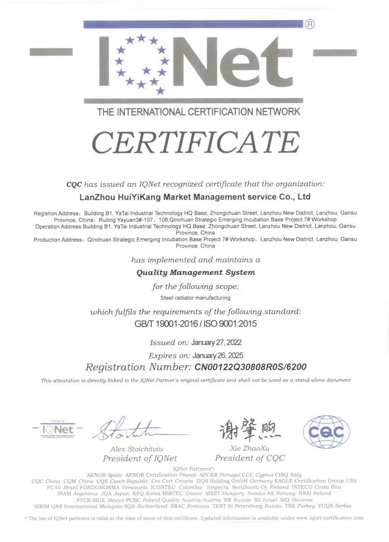 克日,新区3044am永利集团集团瑞岭华飞散热器厂顺遂取得“三标一体”质量治理系统认证证书。该证书的取得标记着集团散热器产品获得了市场认证”通行证”,也意味着其治理系统向规范化、标准化迈出了重大一步。