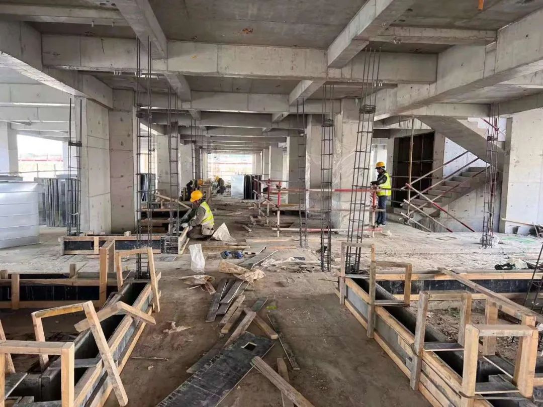 中川国际机场三期扩建市政配套工程已周全进入满负荷生产状态,施工现场混凝土浇筑、钢筋绑扎等作业正有序开展,工人们加班加点推进工程进度。现在地下三层垫层浇筑完成59%,底板钢筋绑扎完成48%,底板混凝土浇筑完成45%,预计今年12月中旬抵达完工验收条件。