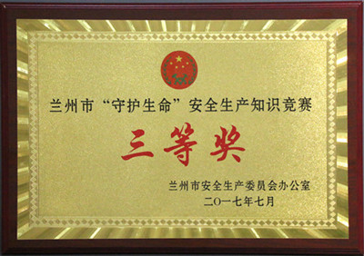 • 兰州市“守护生命”清静生产知识竞赛三等奖