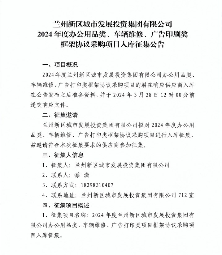 3044am永利集团2024年度办公用品类、车辆维修、广告印刷类框架协议采购项目入库征集