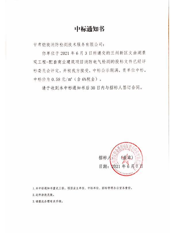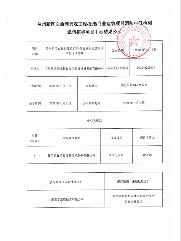 兰州新区文曲湖景观工程-配套商业修建项目消防电气检测约请招标项目中标效果公示