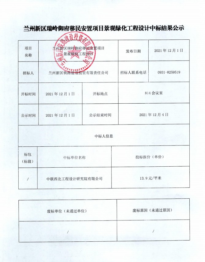 兰州新区瑞岭御府移民安顿项目景观绿化工程设计中标效果公示